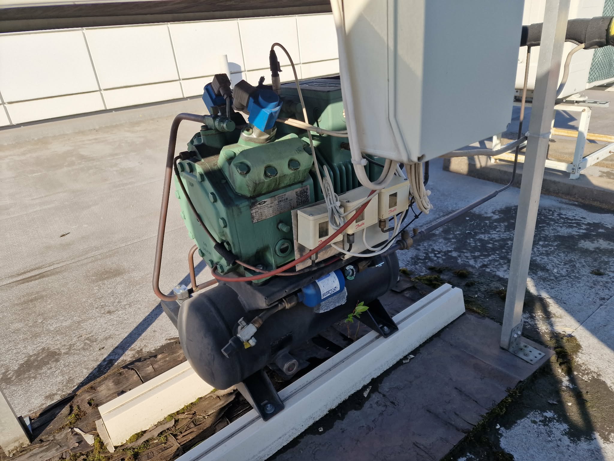 Kompressori silindrite peal on 2 Danfossi võimsusregulaatorklappi